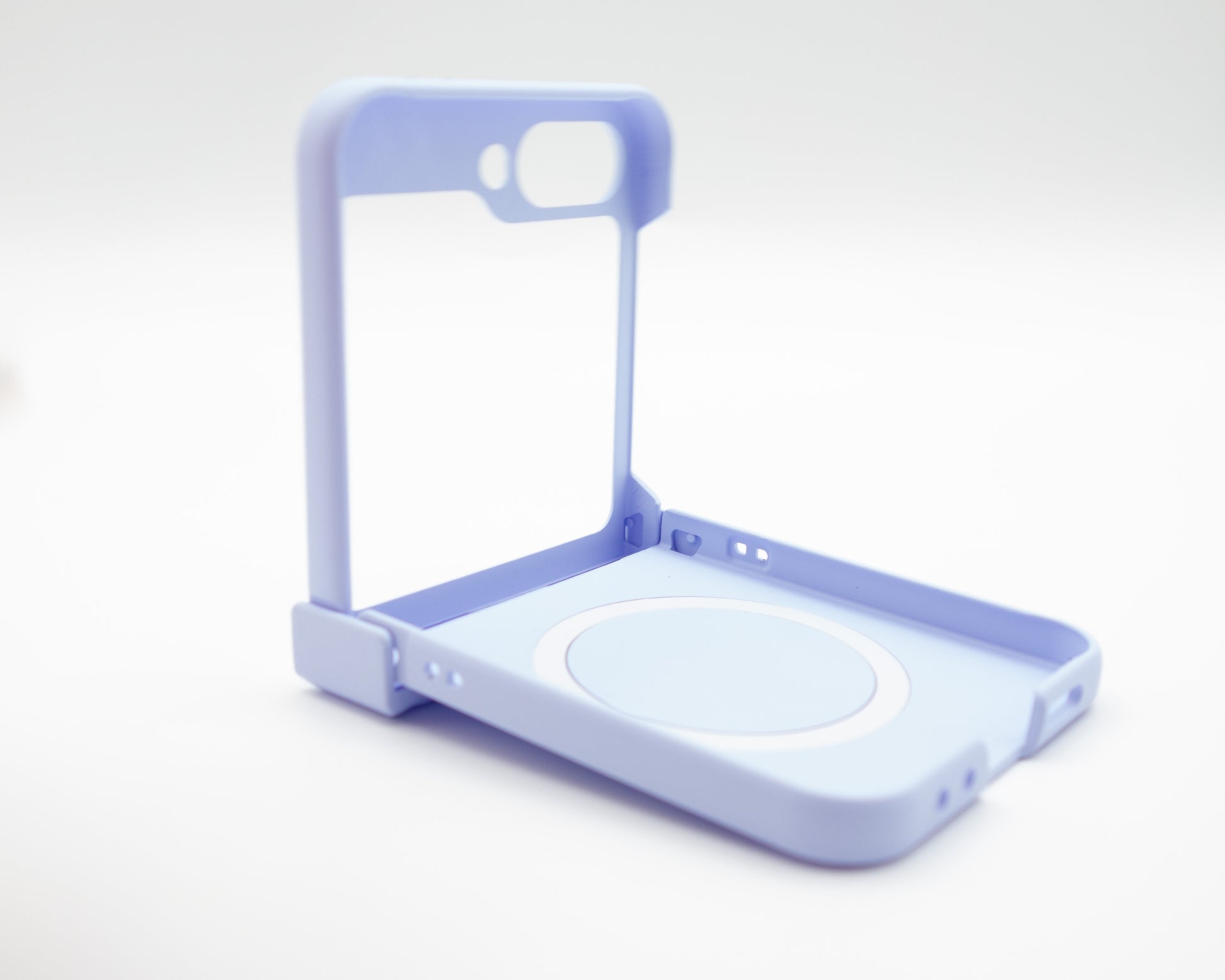 Estuche rígido para Samsung Galaxy Z Flip con diseño de doble pieza que permite doblar el celular. Cuenta con aro para carga magnética. Fabricado en material resistente que protege contra golpes y rayones en el uso diario.